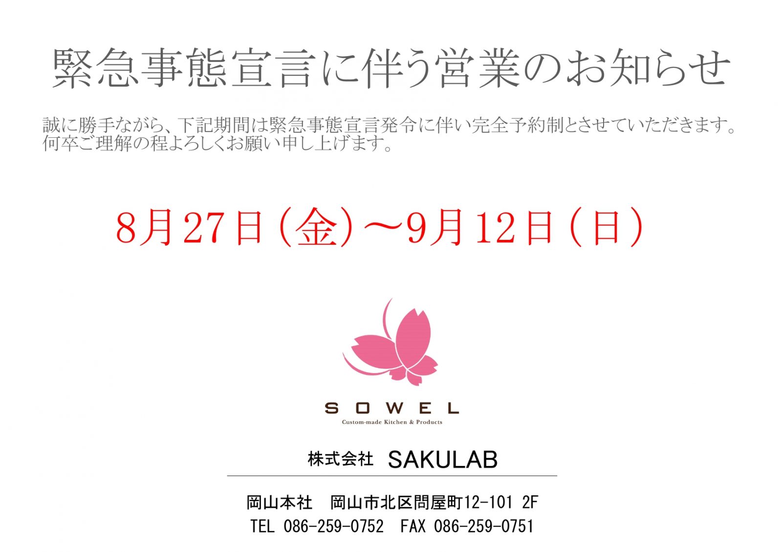 「緊急事態宣言」期間中のショールーム営業について2021.8.27