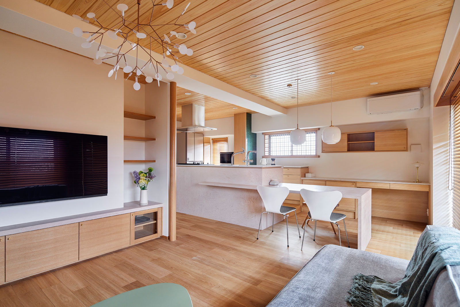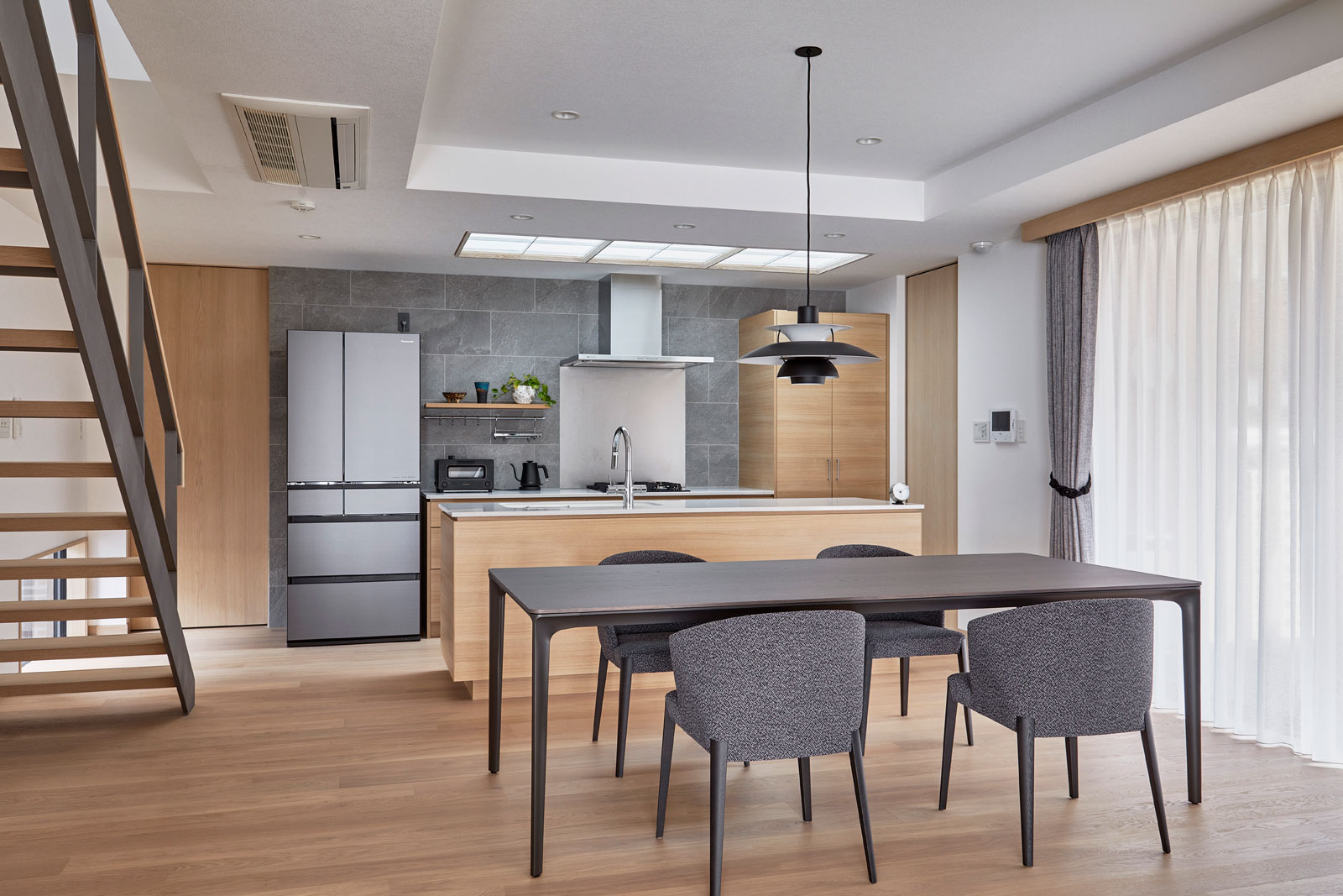 床・壁・建具などの色や材質を考慮し、キッチンが暮らしの空間に調和して自然と溶け込むようなデザインを心がけています。