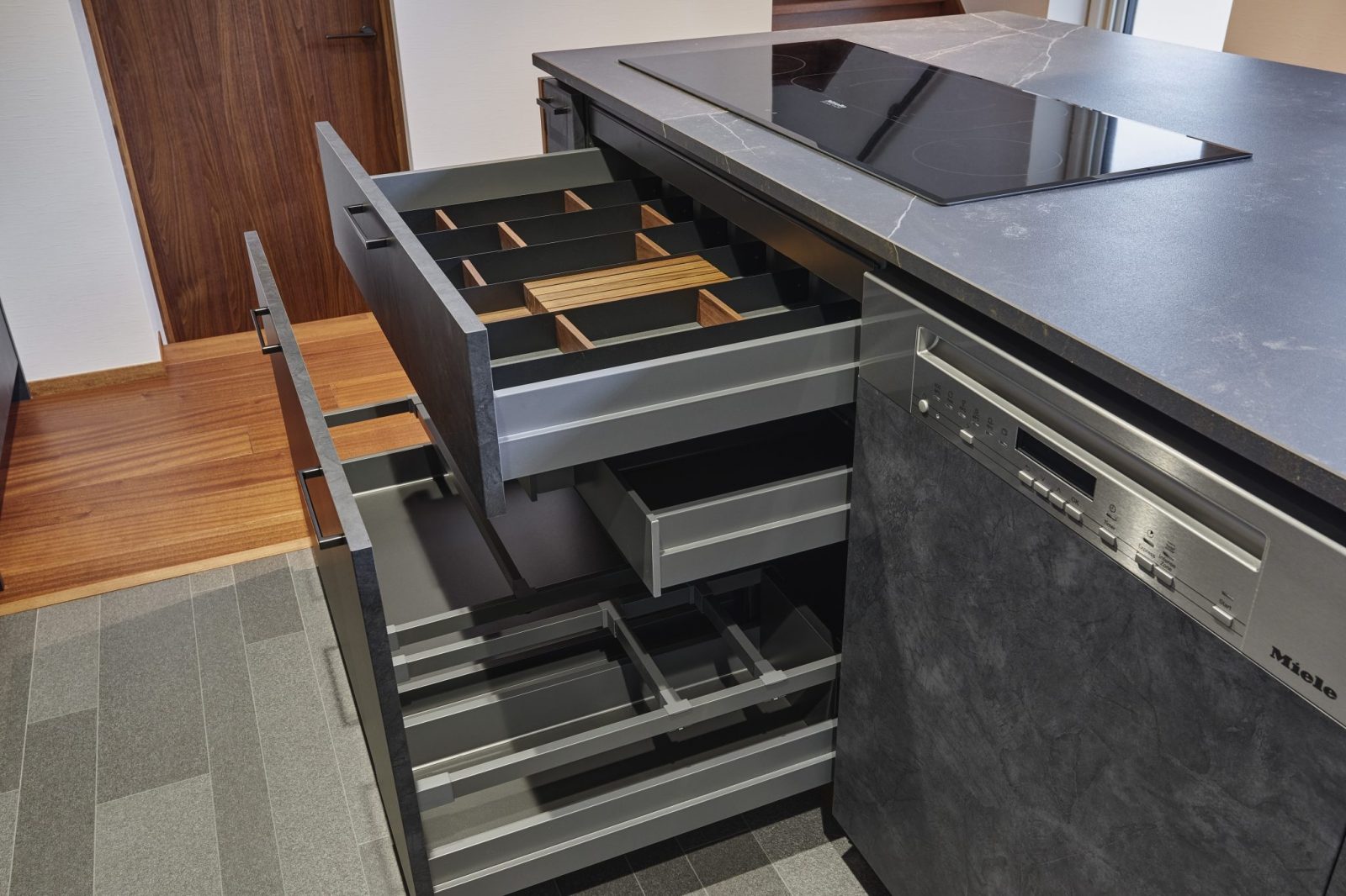 食洗機やIHなどのビルトイン機器もしっかり研究されていて、メーカーはミーレ、さらには機種も決定済とのことでこちらも少しびっくり。